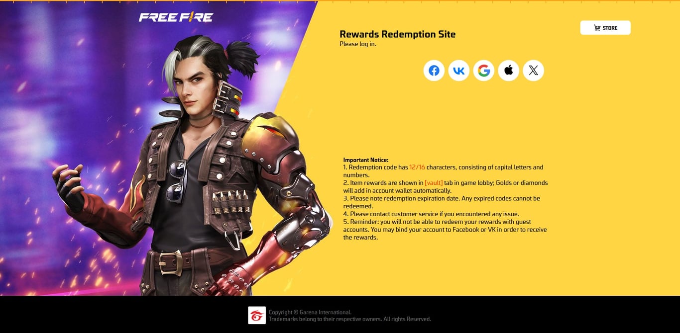 Second, log in with your Free Fire MAX account using Facebook, X, or Apple ID, VK ID, or Google accounts.