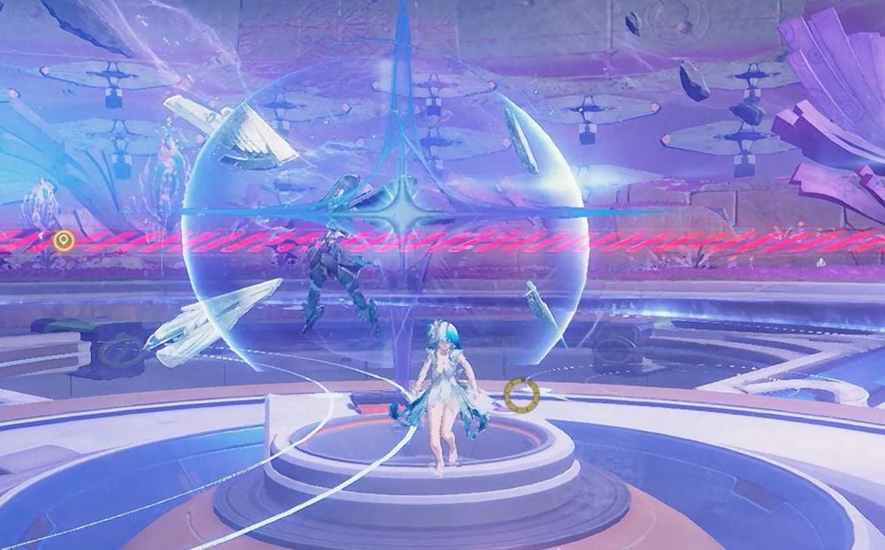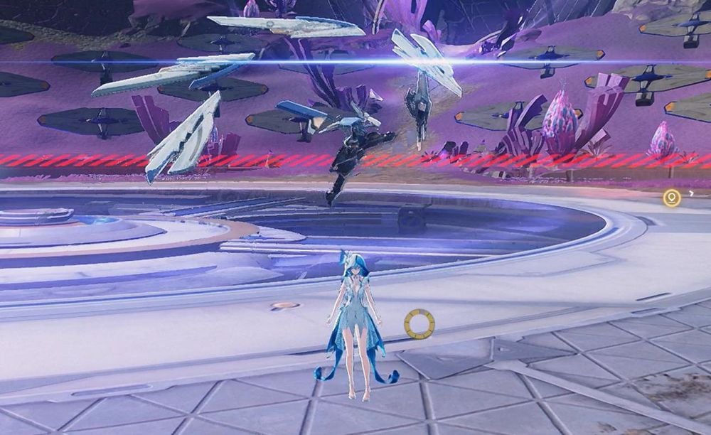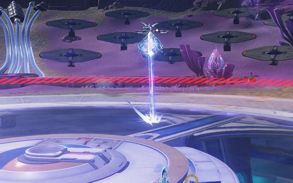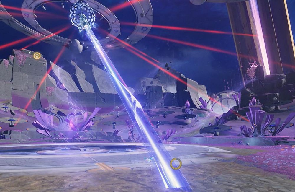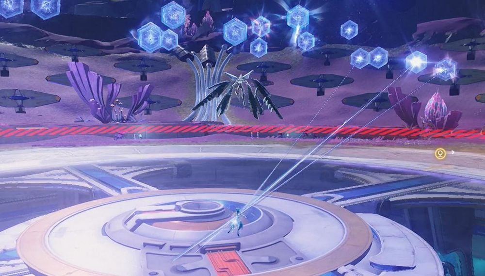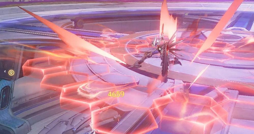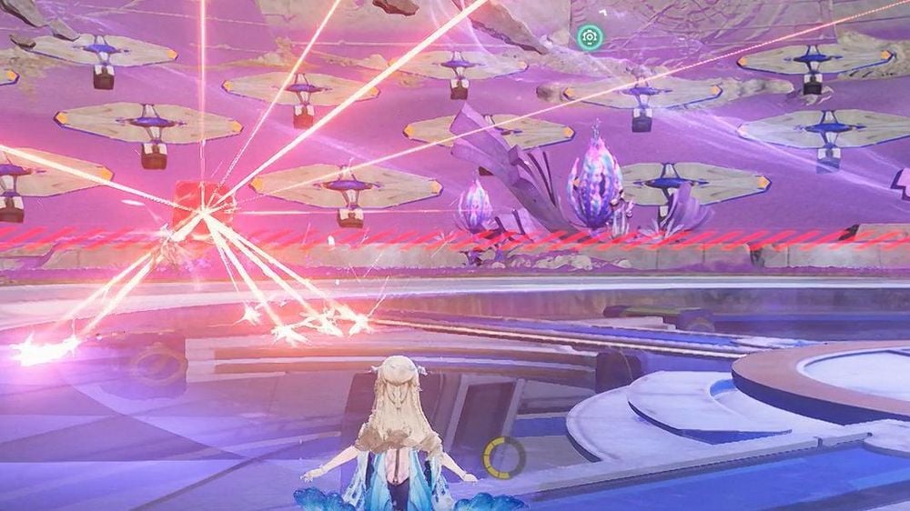 - The Move: She sweeps across the sky, summoning multiple hexagonal portals. These portals fire lasers sequentially at you.