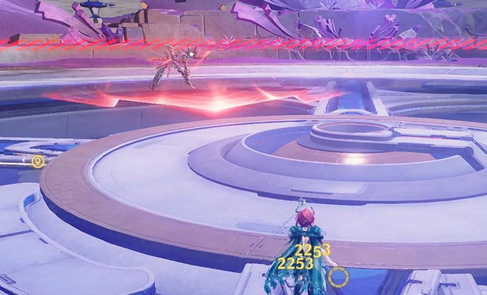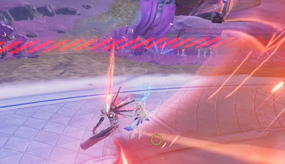 In the second phase, her attacks become more aggressive and include AoE bombardments.