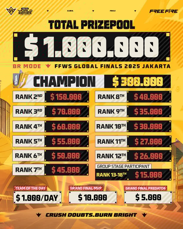 El pozo total del FFWS 2025 es de 1 millón de dólares, con $300,000 para el campeón.