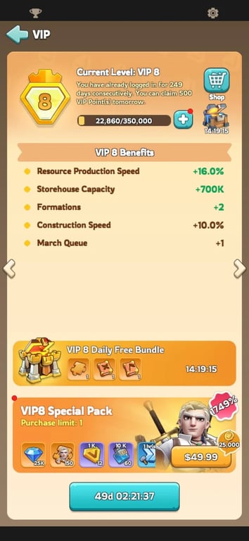 日々のイベント・同盟任務・KVKを継続してこなせば、
