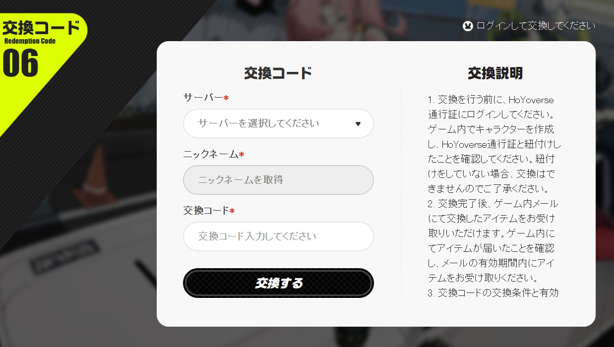 ゼンレスゾーンゼロ 交換コードの入力方法