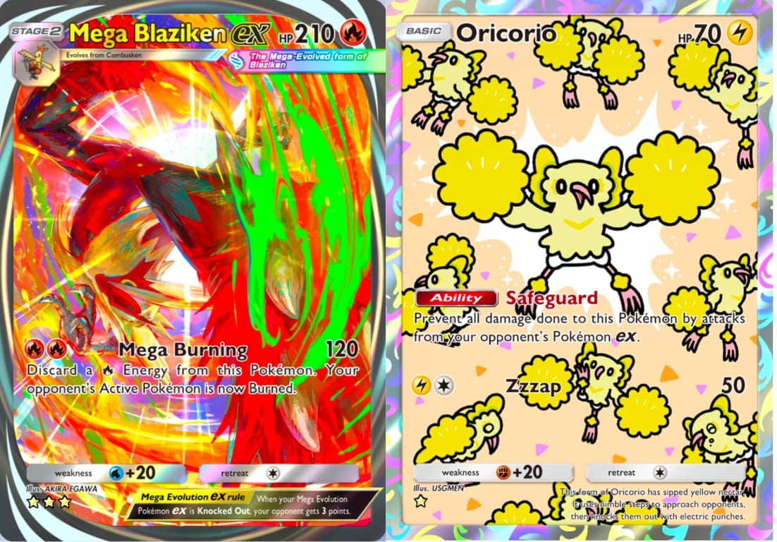在一堆高張力 Mega 卡中,Oricorio 的可愛插畫風格形成強烈反差,也讓人眼睛一亮。