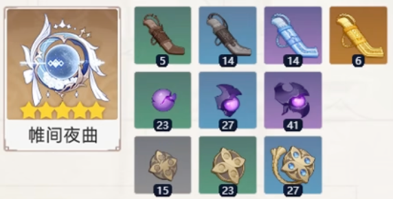 コロンビーナの育成素材は、水元素系素材とナド・クライ地域特産が中心です。